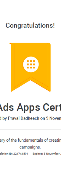 Have 5 Certifications of Google Ads management by Google Corp. Prior to this, i have also done Diploma in Digital Marketing from DTMI Institute, Mumbai, India & have worked in FB first Pilot process batch on third party payrols of Aditya Birla Minacs